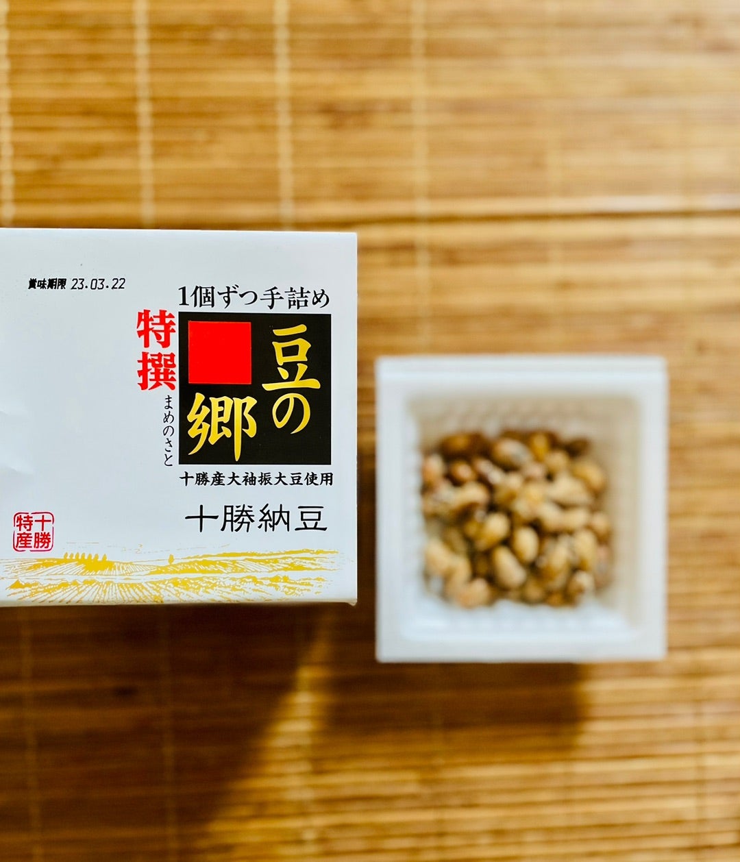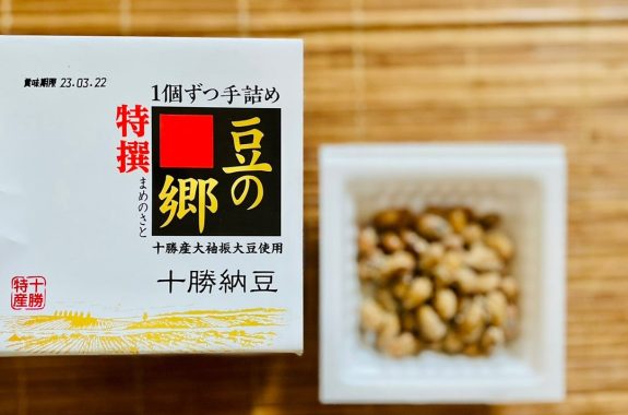 きなこの原料となる大振袖豆を使った大変珍しい納豆です。大振袖豆は大変やわらかく、発酵しにくい品種ですが、特別な技術を使って発酵させた逸品です。